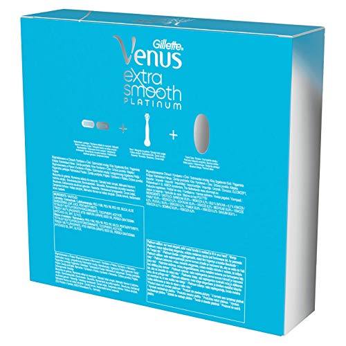 Comprende un rasoio Venus Extra Smooth Platinum da donna in edizione limitata, 2 lamette di ricambio e una custodia da viaggio