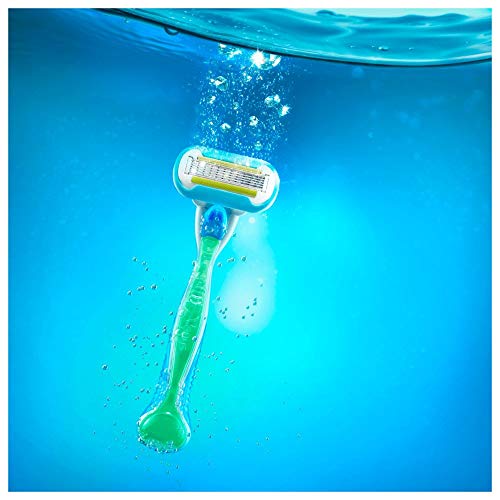 Rasoio con 5 lame distribuite uniformemente con rivestimento diamantato che scivolano perfettamente sulla pelle.