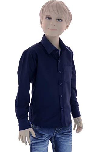 GILLSONZ A1vDa - Camicia per feste per bambini, a maniche lunghe, facile da stirare, disponibile in 9 colori, taglia 86-170 Blu scuro 104/110 cm