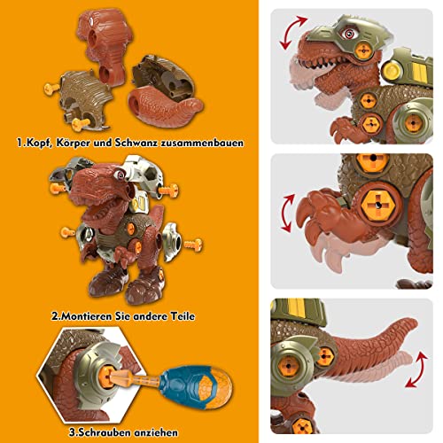 Facile da Montare: Smontare dinosauri giocattolo include trapano, cacciavite, viti e istruzioni, ogni passo di montaggio è spiegato in dettaglio nel manuale d'istruzioni, che è conveniente per i bambini a capire e pensare da soli.