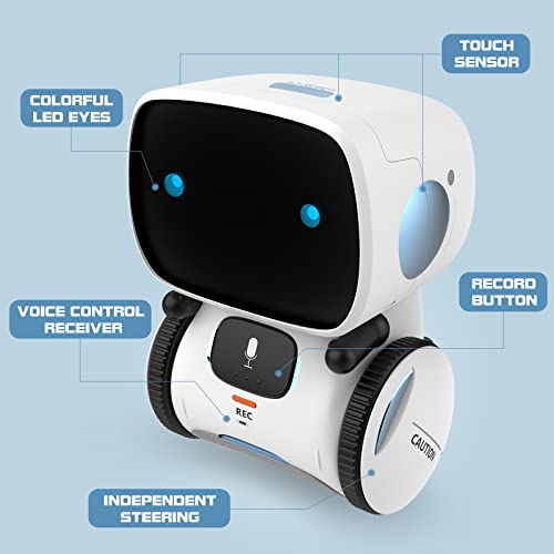 Partner e insegnanti intelligenti: Il giocattolo robot per bambini andrà avanti, tornerà indietro, girare a sinistra, girare a destra e rotazione a 360 gradi quando si tocca il pulsante del sensore. Inoltre, parlare, cantare e ballare sono tutte abilità in cui è buono, non solo come amico, ma anche un ottimo insegnante per i tuoi bambini.