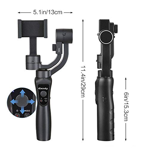 Gimbal portatile EXCUTY 3 Axis per iPhone e Android Smart iPhone Samsung Galaxy HUAWEI- Controlli APP intelligenti per panoramiche automatiche, Time-Lapse e Tracking (Nero)