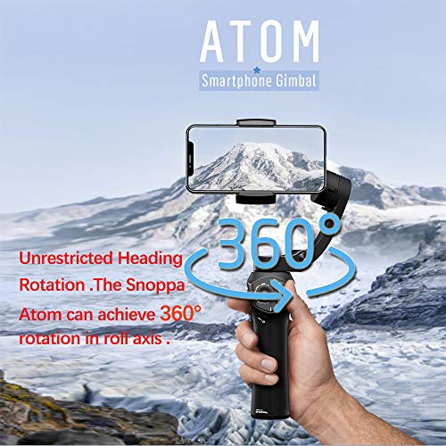 Gimbal Smartphone Snoppa Atom Foldable, Stabilizzatore Smartphone 3 Assi, per Cellulare iPhone Huawei Xiaomi Samsung etc, stabilizzatore per gopro 8 7 6 5, 310g carico utile, durata 24 ore,Pan 360°