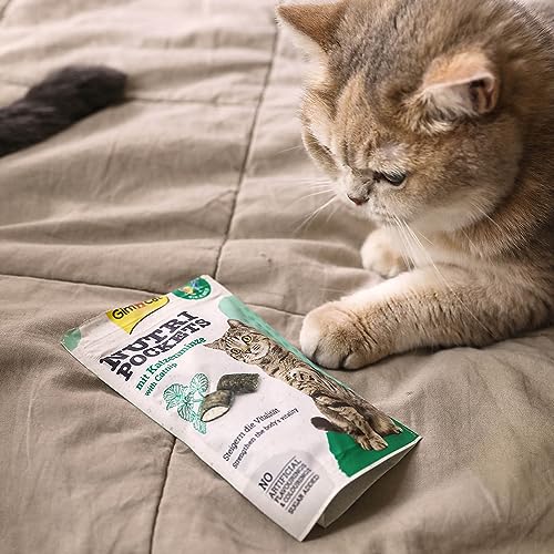 GimCat Nutri Pockets Menta gatta- Snack croccante per gatti con ripieno cremoso e ingredienti funzionali, 1 sacchetto, 1 x 60 g