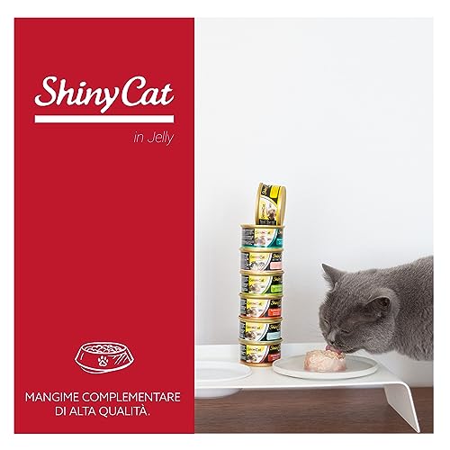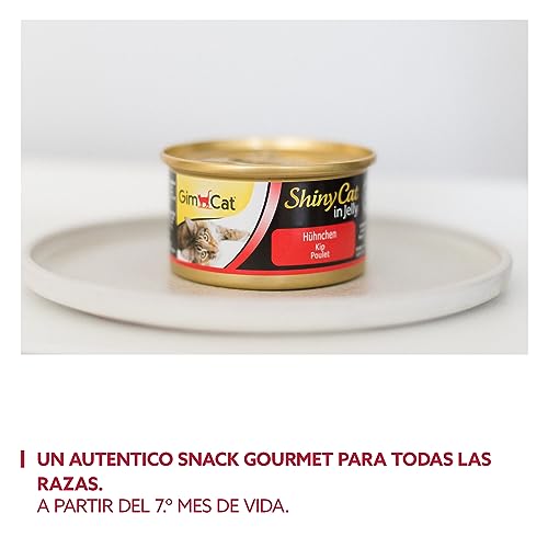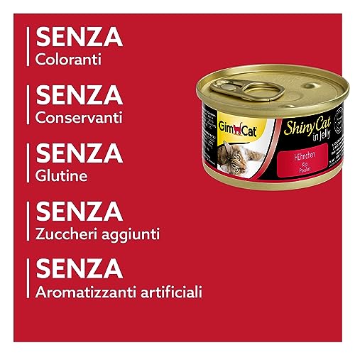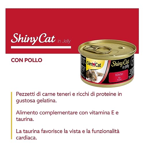 CONTENUTO: 48 scatolette da 70 g GimCat ShinyCat Pollo in gelatina, alimento umido per gatti con un'alta percentuale di carne come integratore alimentare per gatti