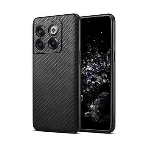 GIMENOHIG Compatibile con Oneplus 10T 5g custodia, fibra di carbonio texture silicone PC ibrido anti-impronte (nero)