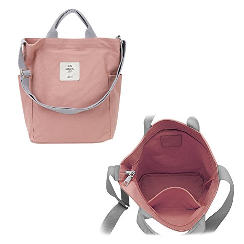 Gindoly - Borsa a tracolla in tela, da donna, stile casual, con tracolla regolabile, Rosa (rosa), Large