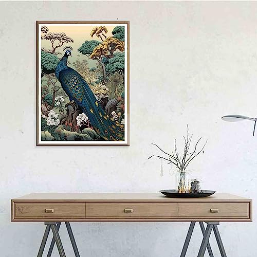 Ginfonr 5D Diamond Painting Pavone Fiore Bosco Kit Completo, Diamante Pittura Animali Con Kit Numerici Pittura Per Trapano Completa Con Decorazioni Da Parete Diamonds Arts 30 * 40cm