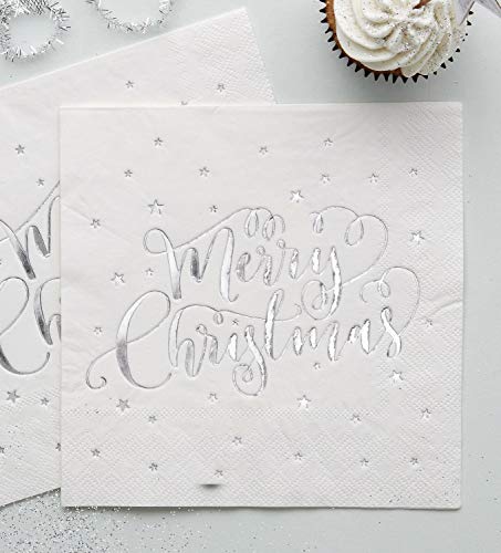 Aggiungi glam alla tua festa con i tovaglioli "Merry Christmas" in lamina d'argento