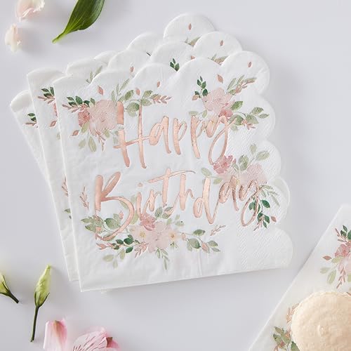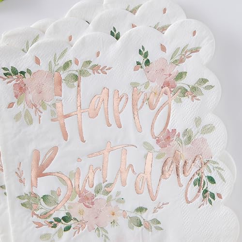 Ginger Ray Confezione da 16 tovaglioli di carta con motivo floreale e felice, colore: oro rosa
