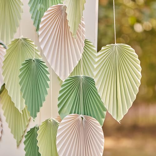 Queste eleganti decorazioni a ventaglio color crema e foglia di salvia creano lo sfondo perfetto per le feste!