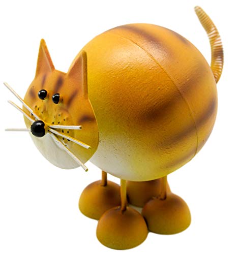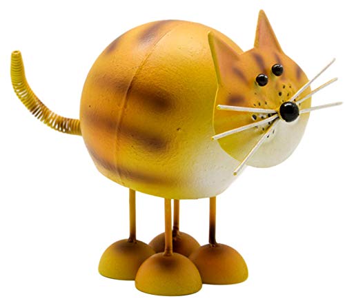 Ginger Cat Garden Ornament - Cute Spring Loaded Cat Figurine Just Keeps Bobbin - Metal Ginger Cat Ornament Purrfect for Home and Garden