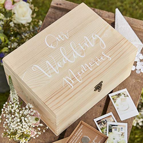 Ginger Ray - Scatola in legno naturale con testo bianco per matrimonio, stile rustico, colore: Bianco