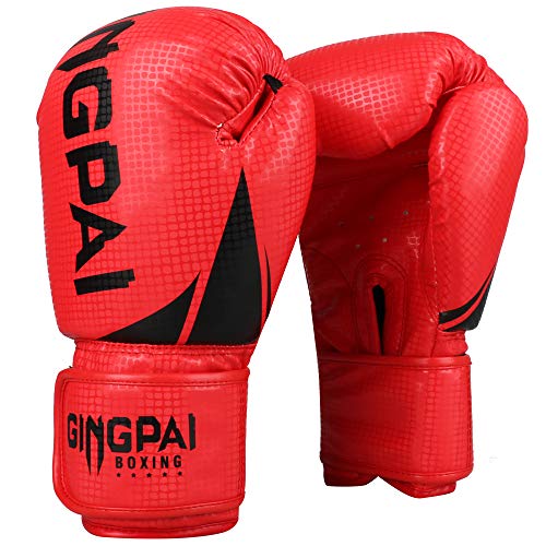 GINGPAI - Guanti da boxe per uomo e donna, da boxe, kickboxing, Muay Thai, MMA (rosso-nero, 340,2 g)