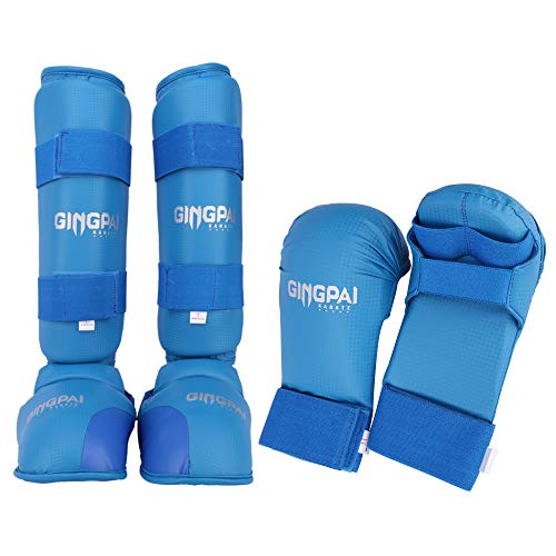 GINGPAI Karate Set 2 in 1, guanti da karate, parastinchi karate, parastinchi per bambini, uomini e donne (blu, L)