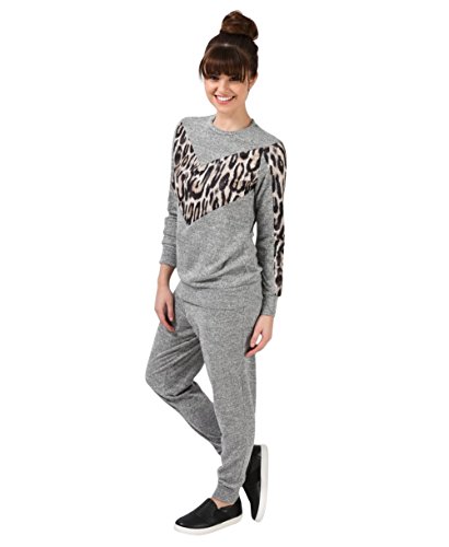 Tuta da ginnastica leopardata da donna, due pezzi, pantaloni jogger e taglio largo confortevole.