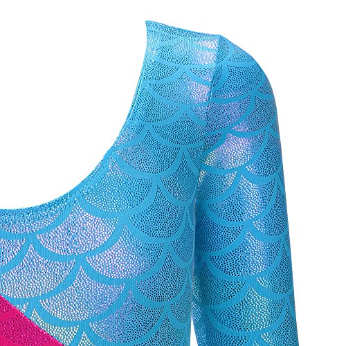 Tuta da ginnastica a maniche lunghe, per bambine, da danza e balletto, da 2 a 15 anni, colore: nero, con stampa a righe e barca a vela, con tulle, body per danza, Bambina, Mermaid, 120(4-5 Jahre)
