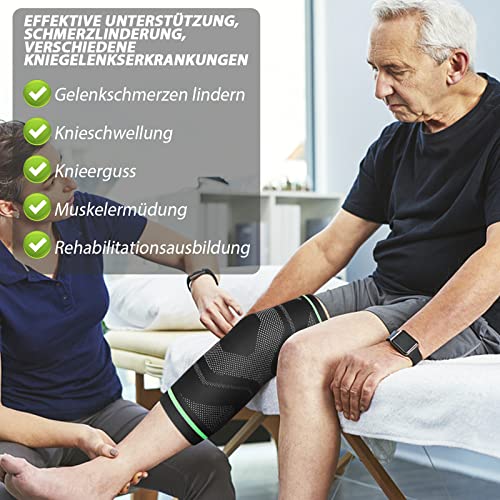 Ginocchiera Sportive Compressione per Uomo e Donna, 2 pezzi Antiscivolo Tutore Ginocchio per Artrite, Rottura del Menisco, ACL, Tendinite, Dolori Articolari, Movimento (nero verde,M)