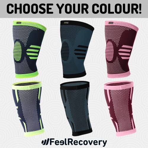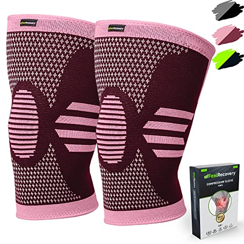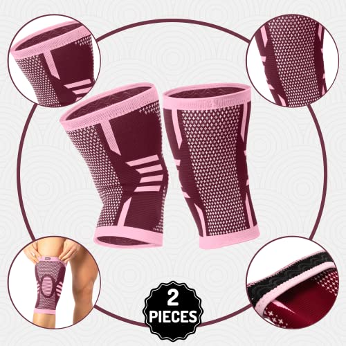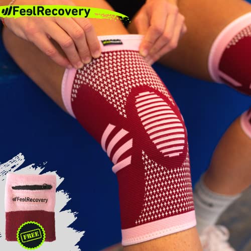 2 Ginocchiere Sportive per Uomo e Donne - Tutore per Ginocchio a Compressione - Fascia Elastica per Menisco e Legamenti per Corsa, Sport e Lavoro - Traspiranti e Antiscivolo (L, Bordeaux)