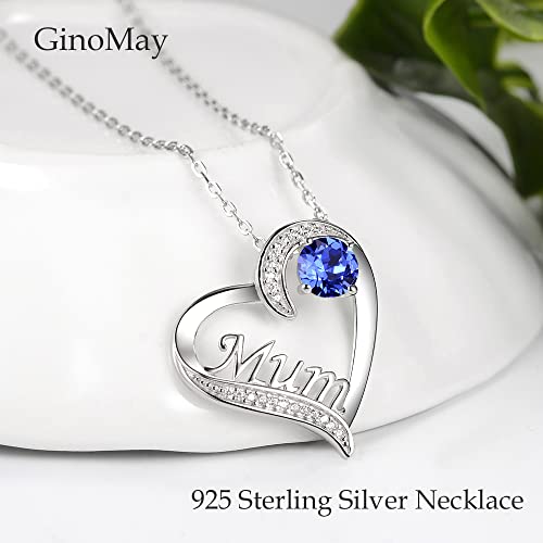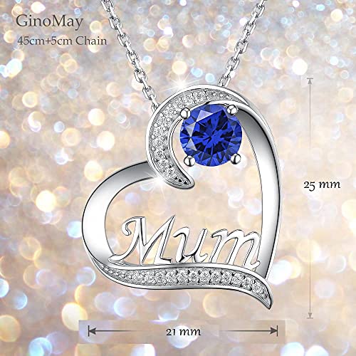 GinoMay Collana Mamma per Mamma Gioielli con Zaffiro Blu Regali di Compleanno Collana Settembre Ciondolo Cuore Amore Argento 925
