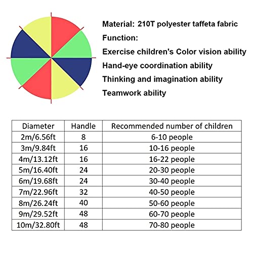 Materiale - Il paracadute del gioco dei bambini è realizzato in tessuto in taffetà in poliestere 210T, resistente e facile da pulire. Basso lavaggio a macchina con sapone delicato alla fine della giornata.