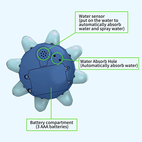 ★[Facile da pulire e utilizzare]: sono necessarie tre batterie AAA (non incluse, il giocattolo consuma molta energia, quindi si consiglia di utilizzare batterie ricaricabili), basta inserire le batterie e coprirle con un cacciavite. Si avvia non appena galleggia nell'acqua e si ferma non appena esce dall'acqua. Si prega di asciugare il giocattolo da bagno quando non viene utilizzato in modo che rimanga pulito e asciutto.