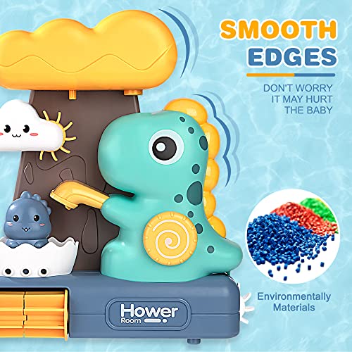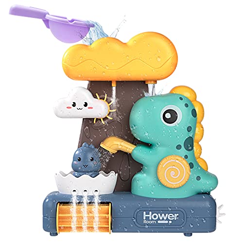 Divertenti giocattoli da bagno per bambini: simpatico dinosauro, versandoci sopra dell'acqua, spruzzando acqua, formando una cascata, girando un mulino a vento, i bambini adorano l'ora del bagno.