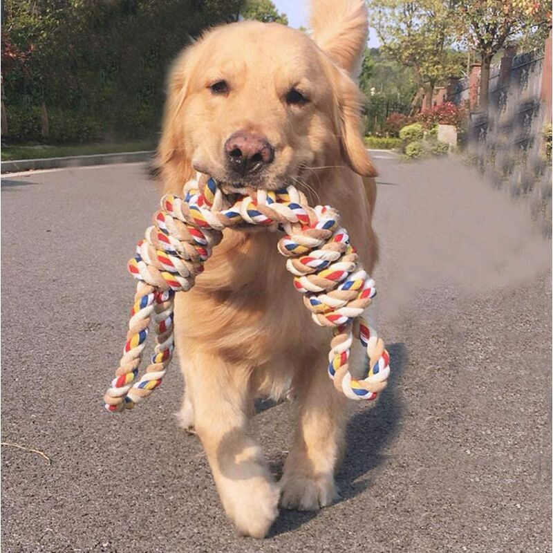Il giocattolo a corda è realizzato in cotone naturale non tossico, che è molto sano e sicuro per il tuo animale domestico. I giocattoli da masticare sono robusti e resistenti, progettati appositamente per cani di taglia media e alta. Che si tratti di allenamento per tirare o masticare, questa è una buona scelta! La lunghezza totale è di 60 cm (23,6 pollici) e la larghezza del nodo è di 8 cm (3,1 pollici), che è abbastanza grande e robusta per masticatori aggressivi. Questo giocattolo offre al tuo cane un modo divertente per godersi ore di divertimento ed esercizio e gli impedisce di masticare i mobili. Masticare o mordere la corda è il modo giusto per pulire il tuo denti di cane, migliora la salute dentale del tuo cane e previene le malattie gengivali! Quantità di consegna: un pezzo.