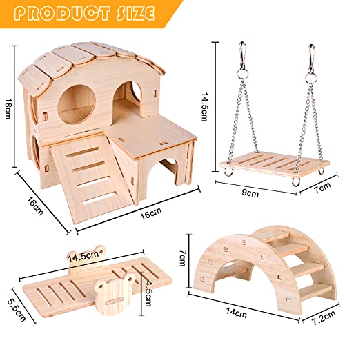 Giocattoli Per Criceti in Legno, 4 Pezzi Giocattoli Da Masticare Per Criceti, Accessori Criceto in Legno Per Criceti, Coniglietti, Gerbilli, Porcellini D'india, Cincillà, Gabbia Per Criceti Fai-da-te