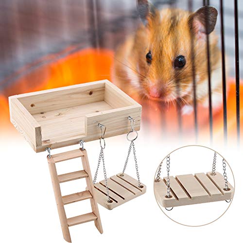 Set di giocattoli di criceto in legno 3 pezzi , Piattaforma oscillante per scala mobile e set di appoggio per mouse Giocattolo per piccoli animali domestici