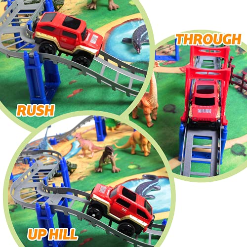 Giocattoli di Dinosauro per Bambini 25 Pz | Bambini Realistico Race Car Track Train Set Jurassic Dinosaur World Game Regali Giocattolo di apprendimento educativo per ragazze e ragazzi