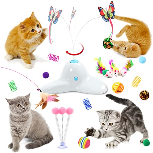 [I nostri 18 giocattoli per gatti per gatti da interno includono: 1*Giocattolo automatico a farfalla per gatti, 1*palla di carta sonora, 1*palla arcobaleno, 1*palla a molla, 1*palla campana, 1*palla leopardo, 1*tubo a molla, 1*bacchetta di piume, 3*palla di peluche colorata, 3*topi colorati, 4*giocattolo a molla per gatti. Soddisfa le diverse esigenze di intrattenimento del tuo gatto.