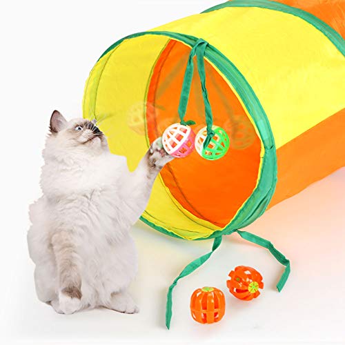 Set di giocattoli per gatti - 20 giocattoli per gatti includono 1 tunnel per gatti pieghevole, 2 palline a campana, 2 palline per capelli, 2 picchetti, 2 molle, 1 palla di zucca, 2 palline di carta sonora, 2 mouse colorati, 1 mouse a tamburo., 1 sfera di sisal, 1 bacchetta teaser di piume, 1 pesce gatto catnip.