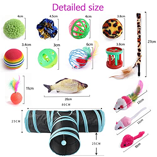 【I MIGLIORI REGALI PER IL TUO GATTO】Giocattoli per gatti: 27 giocattoli per gatti, tra cui tunnel pieghevole, bacchetta per gatti, giocattolo interattivo con piume, topi e topi morbidi, palline colorate e campane.