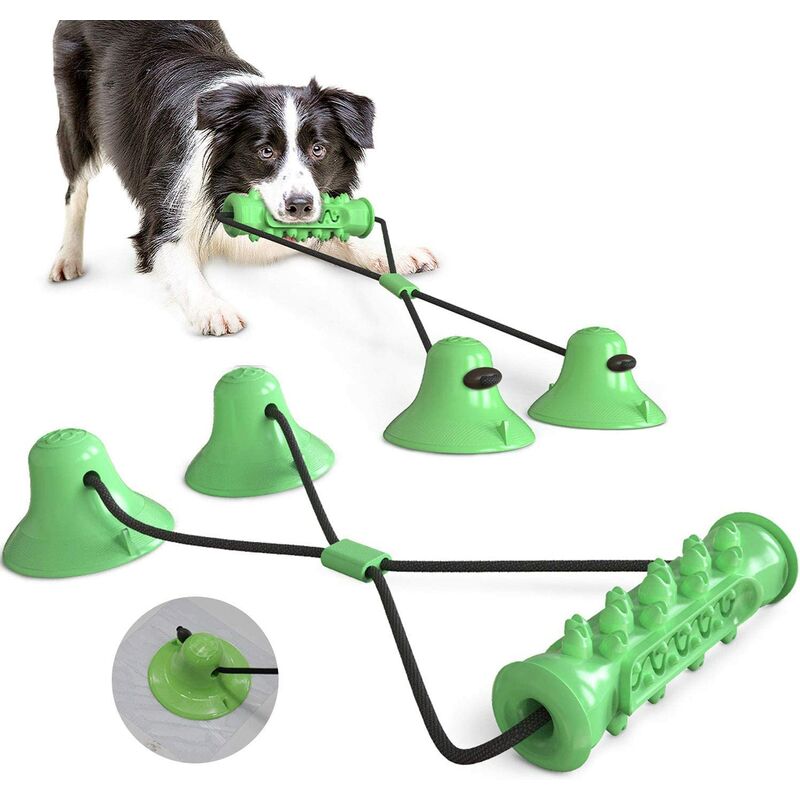 Sicurezza e salute: i giocattoli per cani KINGLEAD sono realizzati in materiale di alta qualità, gomma naturale resistente al 100% per uso alimentare e di consistenza morbida. I giocattoli da masticare per cani possono proteggere le gengive del tuo cane. Lo spazzolino da denti per cuccioli è atossico, resistente ai morsi, ecologico e perfettamente sano. Doppia ventosa unica: il giocattolo da masticare per cuccioli con due super ventose può essere bloccato su qualsiasi superficie liscia o terreno accidentato, con una corda e anello per morso di tigre. Quando si utilizza un giocattolo da masticare per cani con una ventosa, è necessario premere con forza per tenerlo saldamente. Nuovo design e pulizia profonda: design avanzato e distribuzione di molari a zigzag di diverse dimensioni. I giocattoli per addestramento del cane rimuovono tutto il tartaro e il tartaro sul cane ogni minuto e ogni secondo per mantenere la salute dentale del tuo cane al sicuro. Se ingombrante masticazione del cane