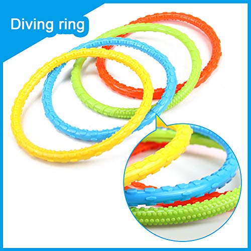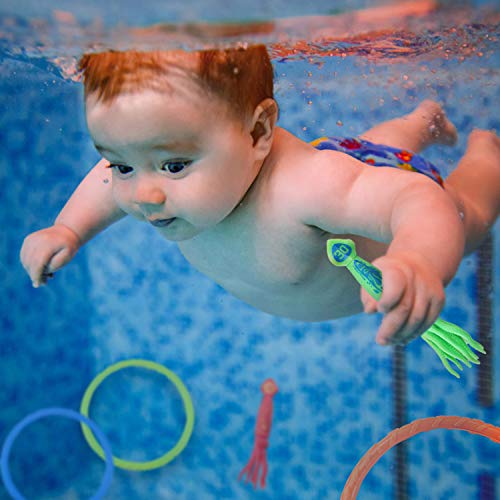 【37 PCS Giochi Per Piscina】Set inclusi 4 anelli, 4 siluri, 3 polpi, 3 bastoncini da immersione, 8 giocattoli con diamanti, 8 conchiglie, 3 meduse e 1 borsa. Giochi subacquei totalmente a 37 pezzi offrono ai tuoi bambini il massimo divertimento quando nuotano!