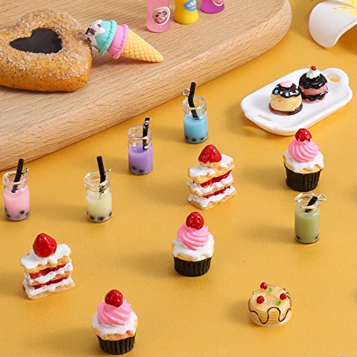 Varietà di stili: il set da gioco Resin Toys include 64 diversi simpatici mini giocattoli alimentari come pane, torte, tè al latte, gelati, gelati, stoviglie, hamburger, ciambelle, cocktail, caramelle, ecc. Ci sono quantità e stili sufficienti per soddisfare le tue esigenze decorative.