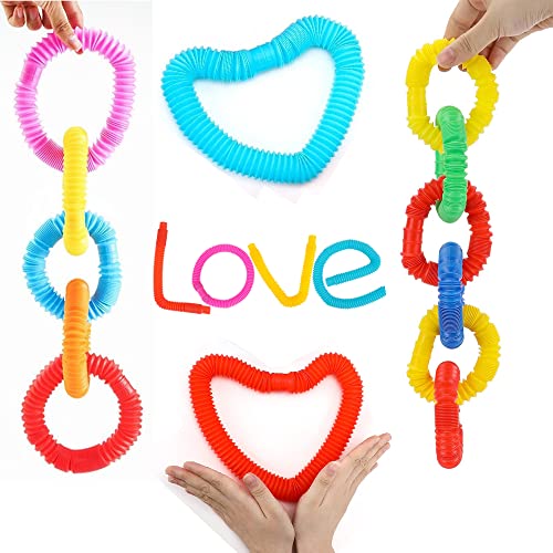 ☺️Giocattoli sensoriali: questi tubi flessibili durevoli possono essere allungati e attorcigliati in qualsiasi forma con un suono pop interessante. con conseguente ore di divertimento e divertimento. Producono anche un suono scoppiettante che stimola il senso dell'udito.