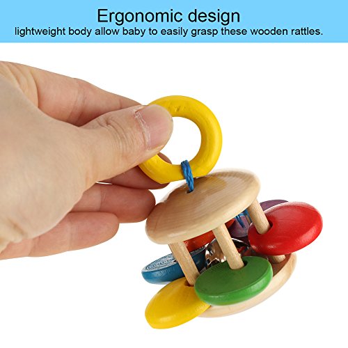 【Design ergonomico】 Questo sonaglio è una maniglia circolare, saldamente all'interno del tallone, agita e anello, promuove lo sviluppo dell'udito del bambino.Prevenire il distacco, flessibile e forte, esercitare la capacità di afferrare il bambino. Primi giochi.