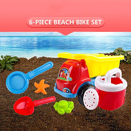 Set di 6 giocattoli da spiaggia per bambini - secchio per camion, pale da spiaggia, rastrelli, clessidra, stampi per animali marini, annaffiatoio, secchio e vanga set per i più piccoli