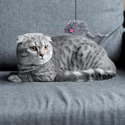 Giocattoli telescopici per gatti, giocattolo con corda elastica per la caccia al gatto per l'esercizio di gattini al coperto, bambola realistica con topo per gattini per invogliare l'istinto di caccia