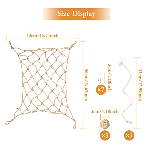 Quantità Sufficiente: Ogni set è dotato di 9 giocattolo con corda da arrampicata per uccelli, di cui 1 rete da arrampicata, 3 corde da arrampicata e 5 palline sepak takraw