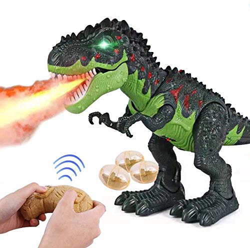 Giocattolo elettrico di dinosauro telecomandato - Giocattoli di dinosauro realistici RC con occhi luminosi, camminare, ruggire, spruzzare, regalo giocattolo robot per bambini Ragazzi Ragazze Bambini