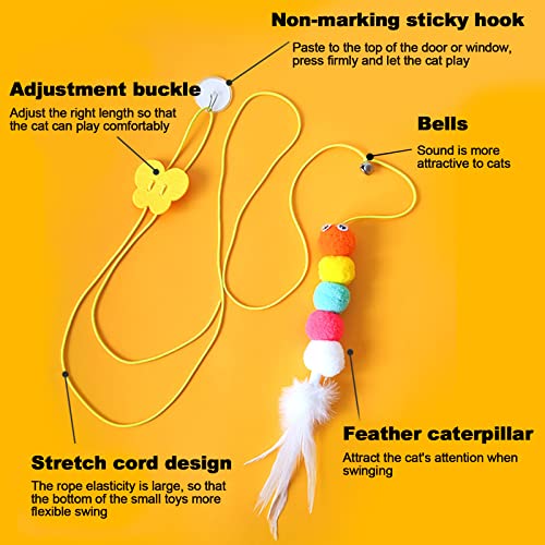 【Facile da installare】 Il nostro bastone appeso per stuzzicare è progettato con ganci adesivi antitraccia per essere appeso in modo flessibile a porte, sedili o gabbie per gatti, e può anche essere attaccato a finestre o altre superfici lisce, attaccandosi rapidamente e non staccandosi facilmente. Il vostro gatto amerà giocare con loro perché possono rimbalzare su e giù.
