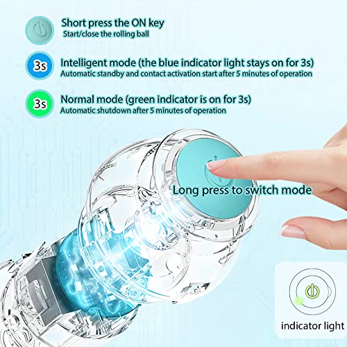 【2 modalità】Modalità normale (il giocattolo per gatti inizierà a rotolare liberamente e si spegnerà automaticamente dopo 5 minuti), modalità Smart (tenere premuto per 3 secondi in modalità normale per passare alla modalità intelligente. Si spegnerà automaticamente dopo lo spegnimento dopo 5 minuti e si accende automaticamente quando il tuo gatto tocca la pallina, così il tuo gatto può giocarci quando vuole).