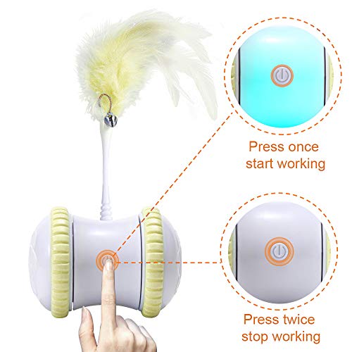 Giocattolo per gatti interattivo robotico per interni, rotazione automatica a 360 gradi, movimento irregolare, luce LED per gattini/gatti, ricarica USB aggiornata, batteria di grande capacità