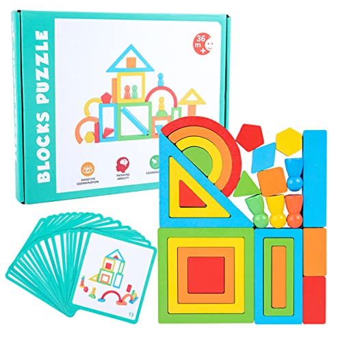 Giocattolo impilabile in Legno 26pcs Blocchi di Costruzione a Forma di Arcobaleno Creativo Blocchi di Costruzione Geometrici Blocchi di Puzzle di apprendimento in Legno educativo precoce