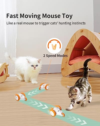 Giocattolo mouse rapido con luce flash per stimolare: il giocattolo interattivo a forma di topo si muove velocemente come un vero topo, che innesca l'istinto naturale di caccia dei gatti per inseguire e mantiene i gatti coinvolti. La coda di illuminazione a LED attira l'attenzione dei gatti mentre brilla e lampeggia in diversi colori. La luce brillante aiuta anche a trovare facilmente il giocattolo sotto i mobili o nel buio.