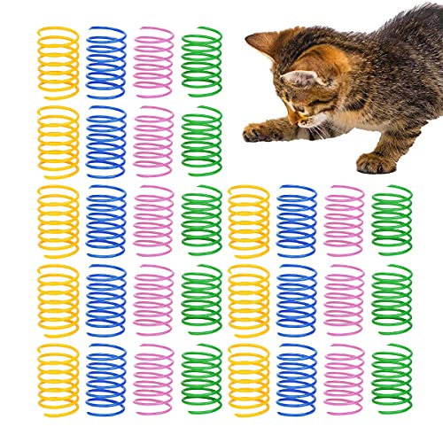 ❤ Quantità sufficiente: vieni con giocattoli a molla per gatti in plastica da 60 pezzi, il giocattolo a spirale per gatti può essere condiviso con più gatti e può anche essere sostituito se necessario.