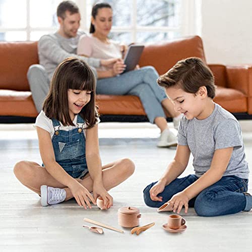 Divertiti: set di stoviglie in legno unico e liscio, un design compatto per i bambini, costruire fiducia in se stessi e divertirsi.